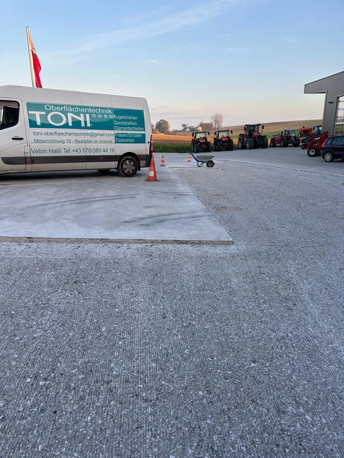 Unser Kugelstrahl-Service bietet die optimale Vorbereitung von Beton-, Stahl- und Asphaltflächen für neue Beschichtungen, Versiegelungen oder Markierungen. Durch präzise Einstellung von Strahlbild und Intensität erzielen wir gleichmäßige, haftfähige Oberflächen – staubarm, effizient und umweltfreundlich. TONI Oberflächentechnik GmbH & CoKG steht für saubere Ausführung, höchste Präzision und individuelle Anpassung an jedes Projekt, damit jeder Untergrund die ideale Basis für eine langlebige Weiterverarbeitung erhält.